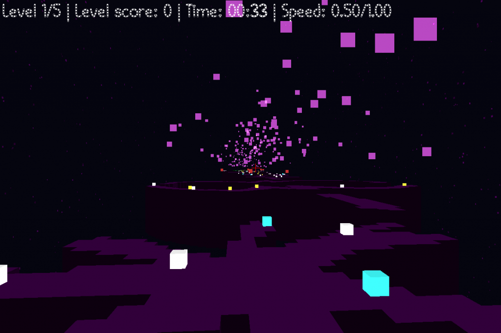 The game is a multi level 3D game. Mazes are generated from each letters of the sentences in the ‘DATA/level’ config file, using the config specified font.